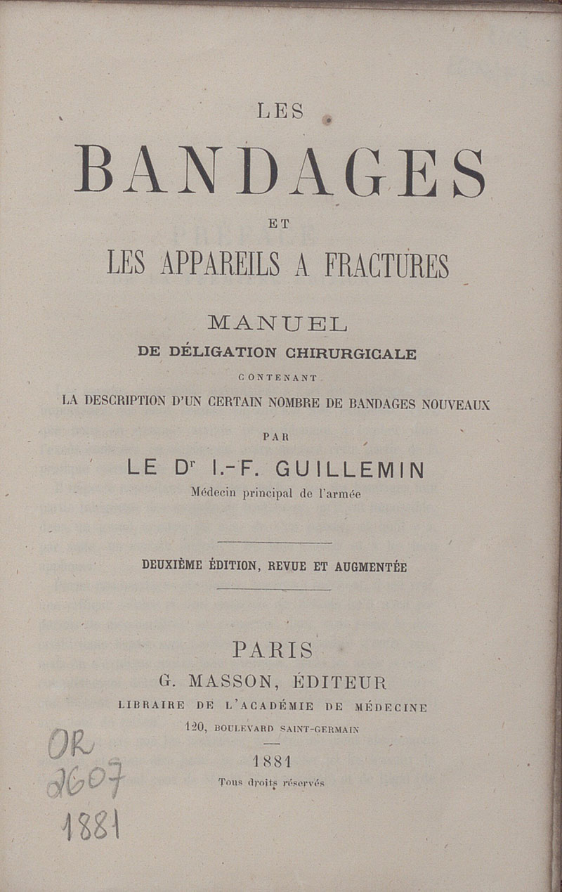 Les bandages et les appareils a fracturesmanuel de déligation chirurgicale contenant la description d'un certain nombre de bandages nouveaux