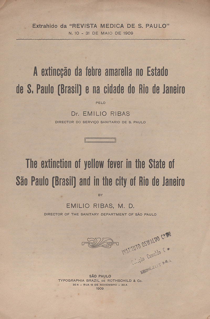 A extincção da febre amarella no Estado de S. Paulo (Brasil) e na cidade do Rio de Janeiro =The extinction of yellow fever in the State of São Paulo (Brazil) and in the city of Rio de Janeiro