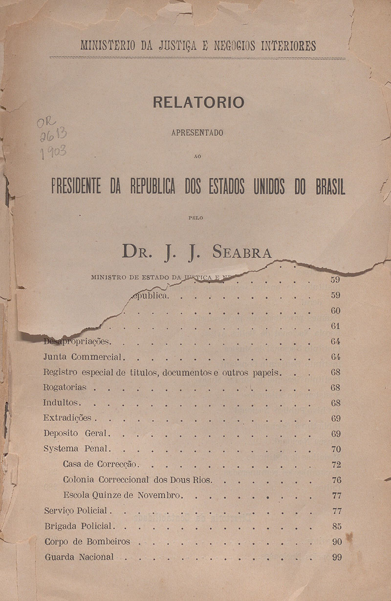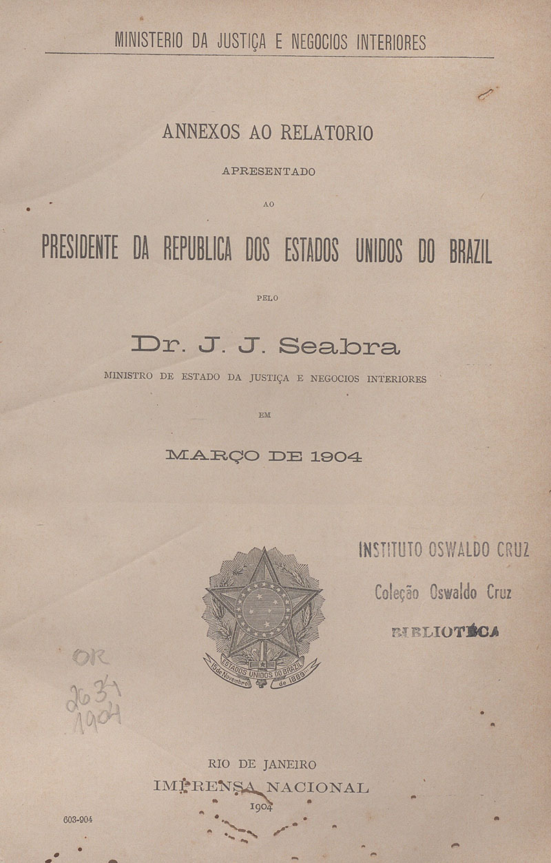 Annexos ao relatório apresentado ao presidente da Republica dos Estados Unidos do Brazil pelo Dr. J. J. Seabra